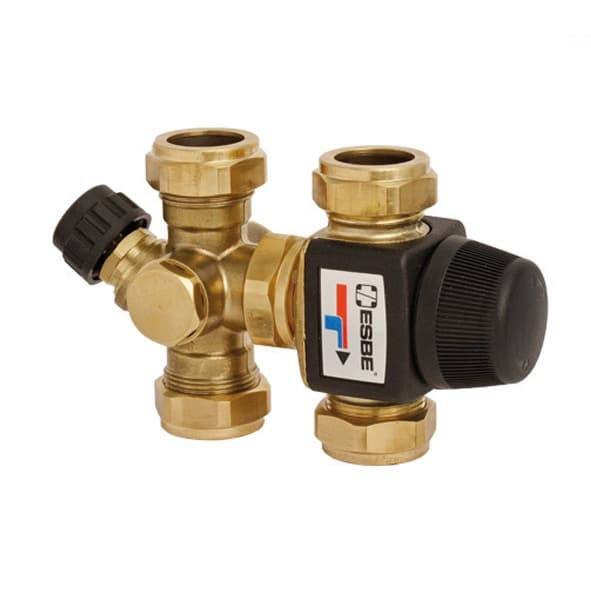 Ventilkombination avsedd för varmvattenlagring. Inkommande kallvatten har back- och avstängningsfunktion samt anslutningar för säkerhetsventil, vakuumventil osv. Inkommande varmvatten regleras inom temperaturområdet 35-60°C genom en termostatisk blandningsventil serie VTA320.